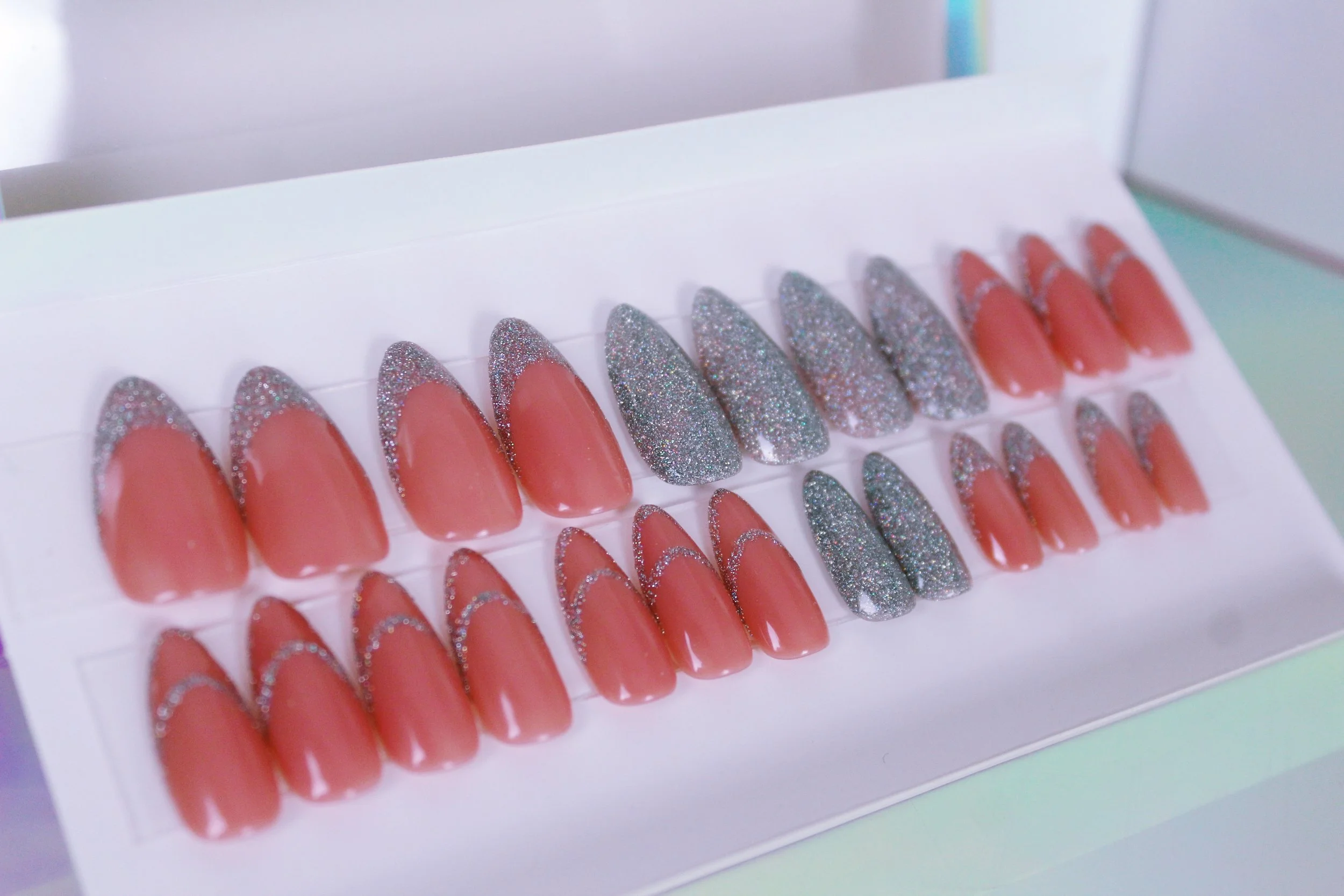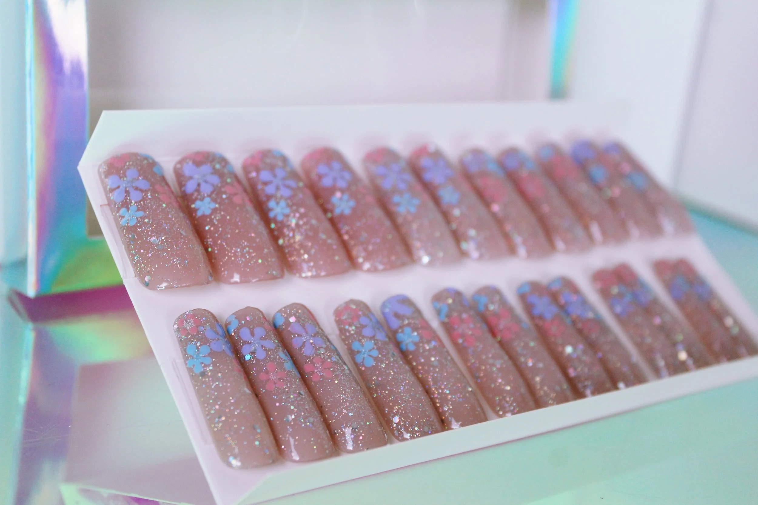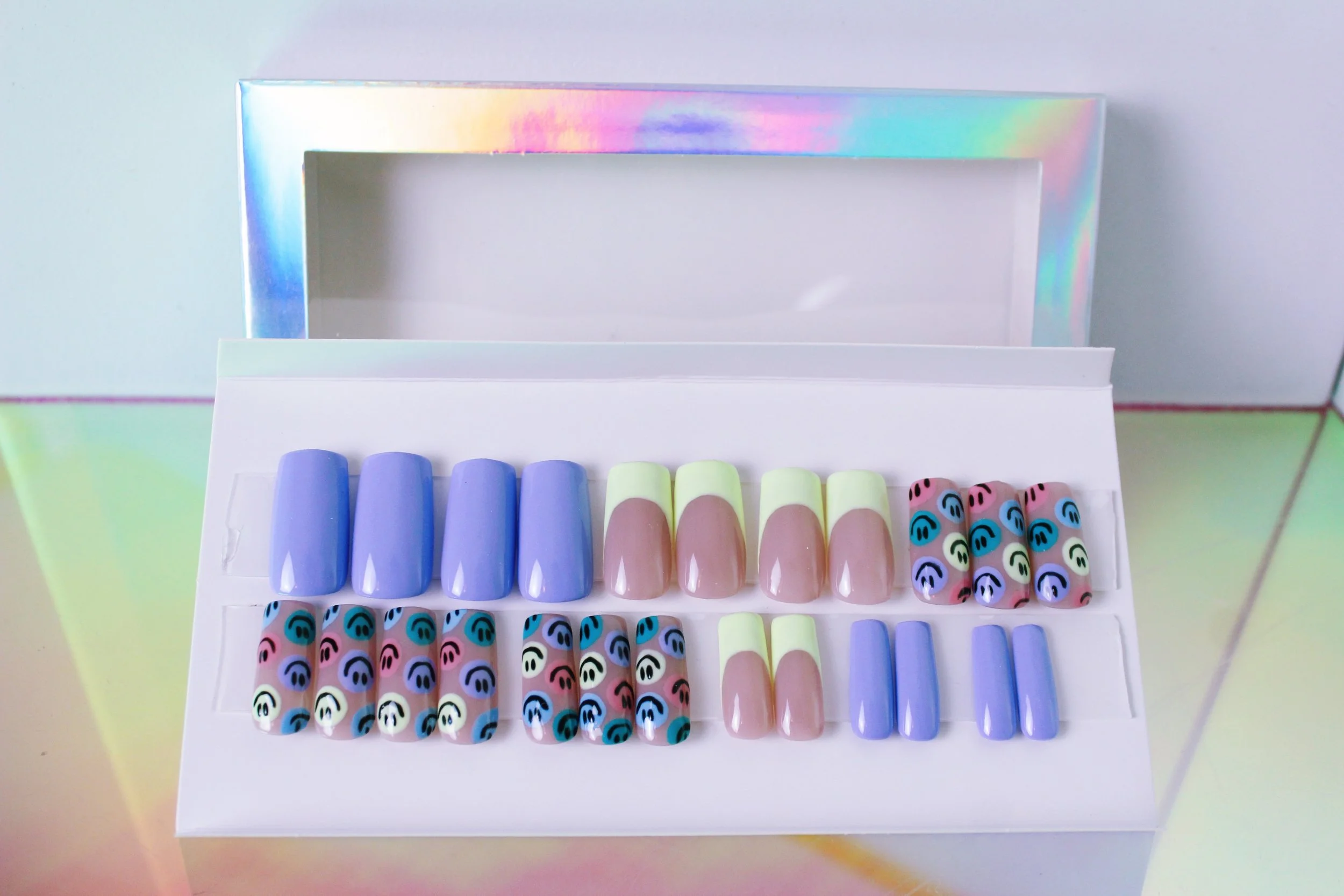Every set includes: KDS Nail Glue, double-sided nail glue stickers, a cuticle pusher, a nail buffer, a nail file, alcohol wipes, and Cuticle Oil